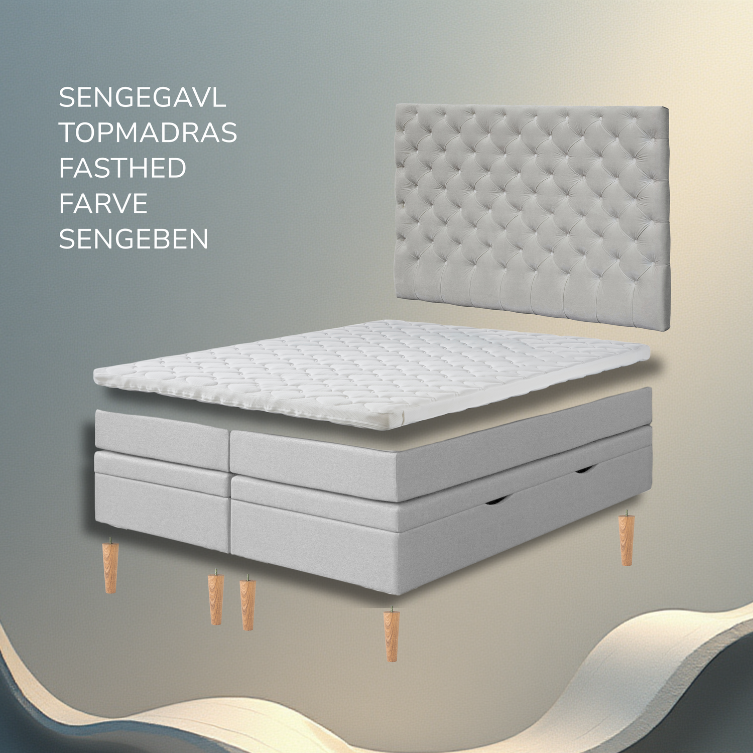En sengegavl er prikken over i’et på din nye seng. Vælg mellem 4 af vores luksuriøse sengegavle, og skab dit eget udtryk i dit soveværelse.